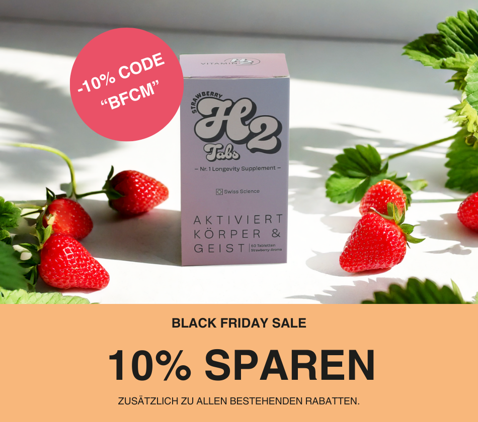 Angetrieben durch molekularen Wasserstoff H₂, wissenschaftlich belegt in über 1.300 Studien. Schützt deine Zellen, steigert natürliche Energie und beschleunigt Regeneration von innen.